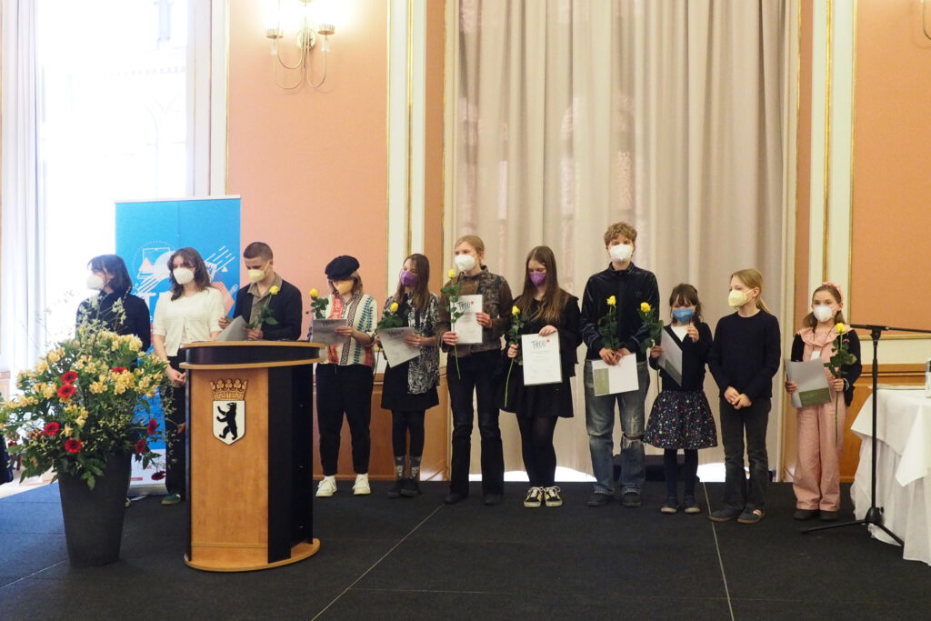 Nach langem und genauem Abwägen wählt die Vorjury des wortbau e. V. ungefähr 30-40 Texte schreibbegabter Schüler*innen, die der Hauptjury vorgelegt werden. Aus dieser sogenannten Longlist wählt die Hauptjury den Jahrgang des THEOs aus, der mit weiteren Werkstätten gefördert wird und auf der großen Bühne des Roten Rathauses Berlin beziehungsweise der Staatskanzlei Potsdam ausgezeichnet wird.